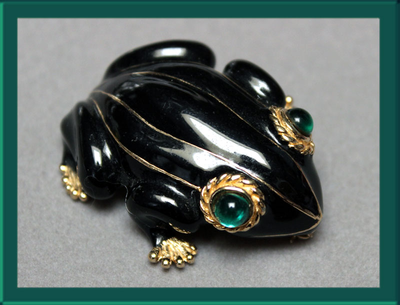 hand-set in gold-tone metalwork. Early pieces are often unmarked, but most pieces after 1945 were marked,