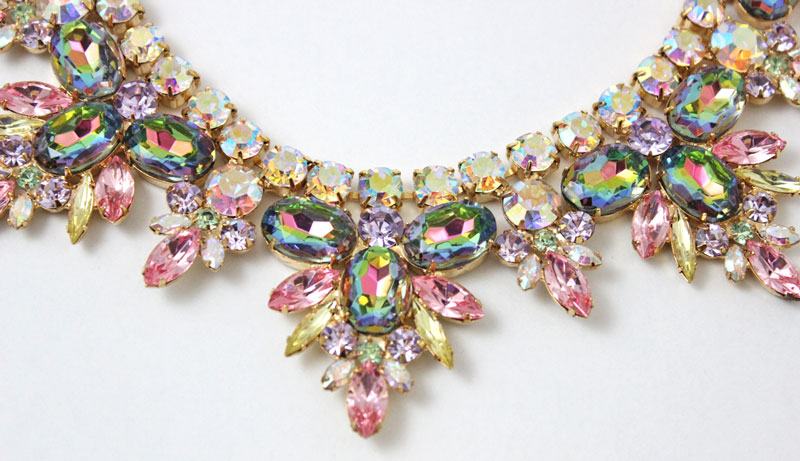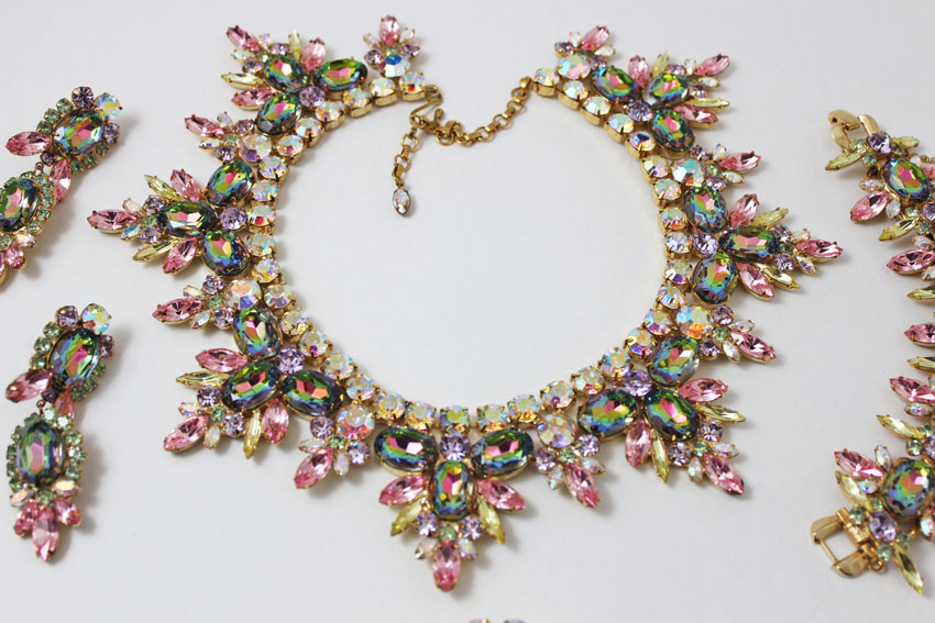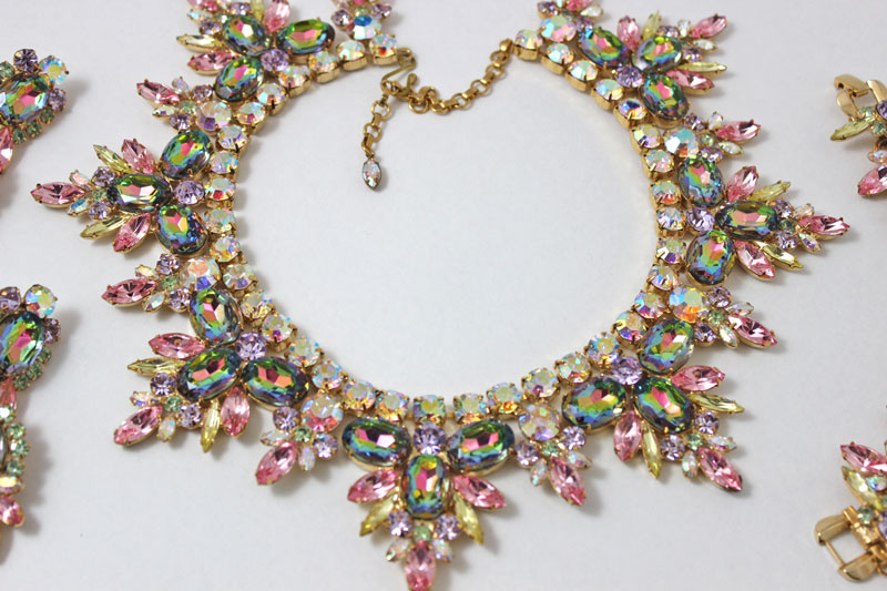 Anne DiMartino designs are the most beautiful Juliana style pieces I've seen since the original Juliana D&E jewelry. She captures that era flawlessly. Before her fascination with costume jewelry design, the Tennessee based artist was sculpting and designing dolls for some of the worlds largest doll companies. This art form took a turn when DiMartino became compelled to teach herself the lost art of costume jewelry making; an endeavor she has pursued ever since. Aficionados of the DiMartino Originals line purchase the artist's jewelry for its exquisite quality in design, color and materials. Working with a myriad of gemstones and rhinestones in a multitude of colors, shapes and sizes the artist unleashes her muse to bring each and every one of a kind 14K gold plated masterpiece to fruition.